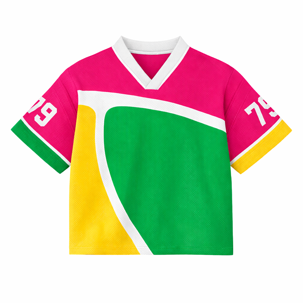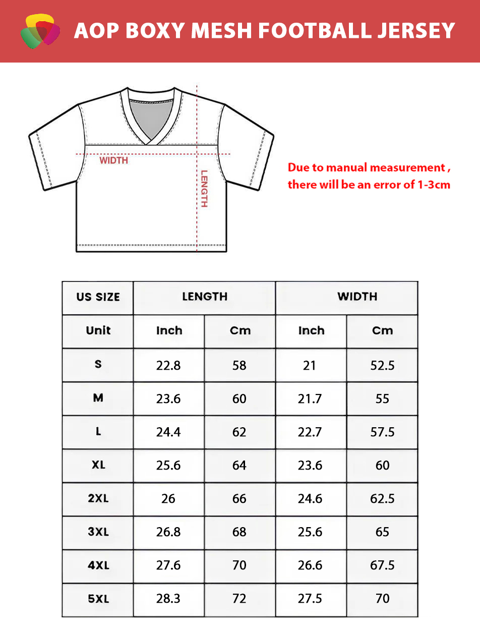From urban styling to game-day energy, the All-Over Print Boxy Mesh Football Jersey delivers modern fit, breathable comfort, and bold visual impact.