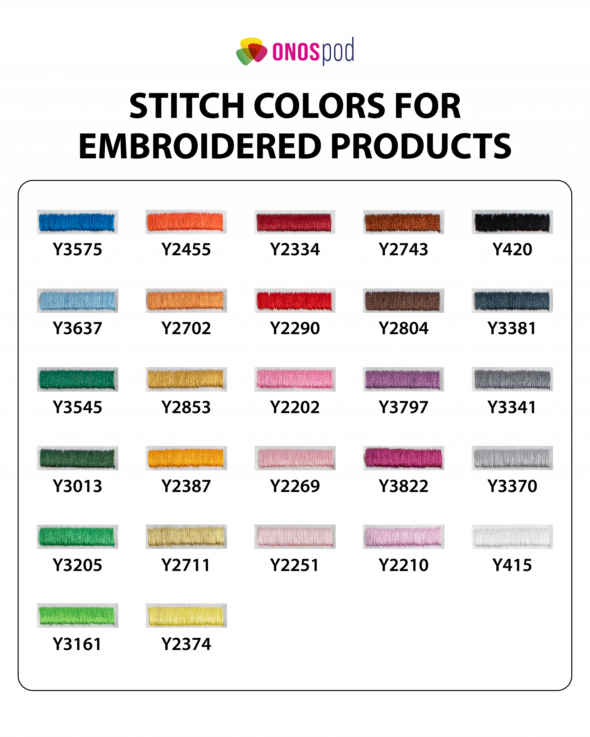 27 stitch color options to match any design or brand palette