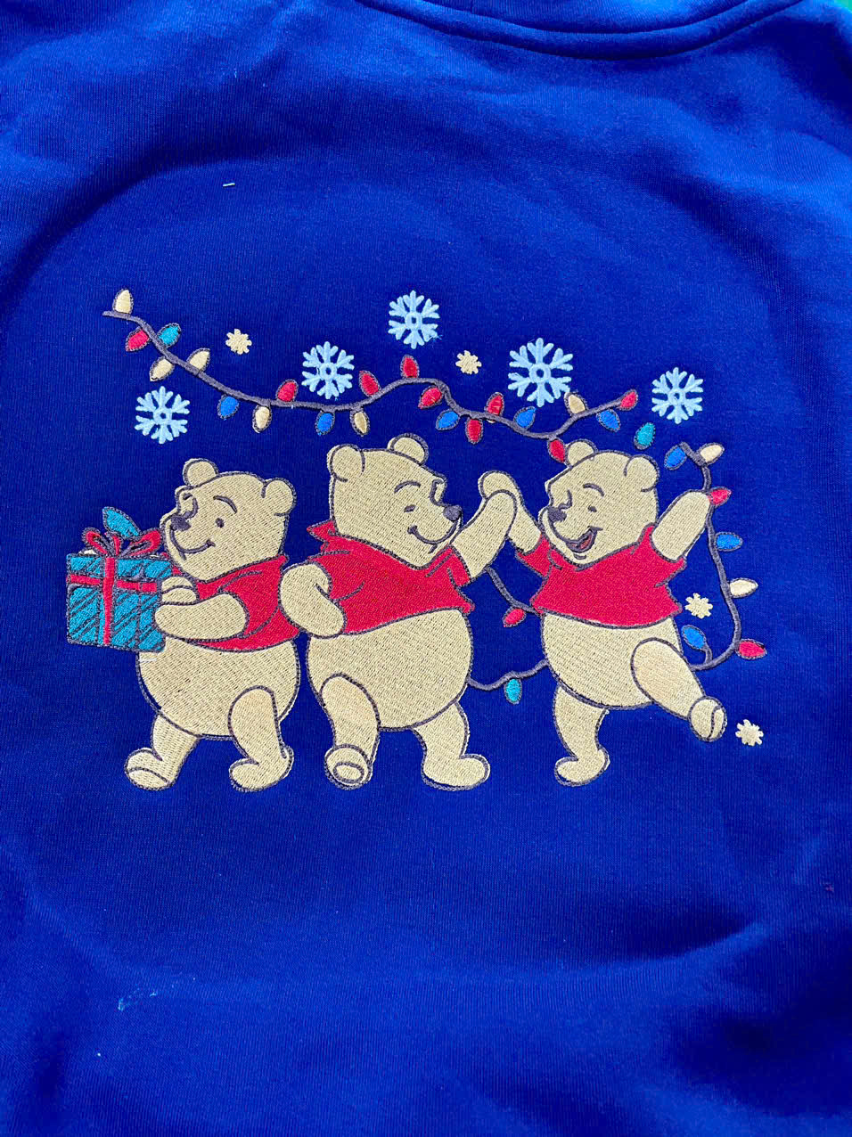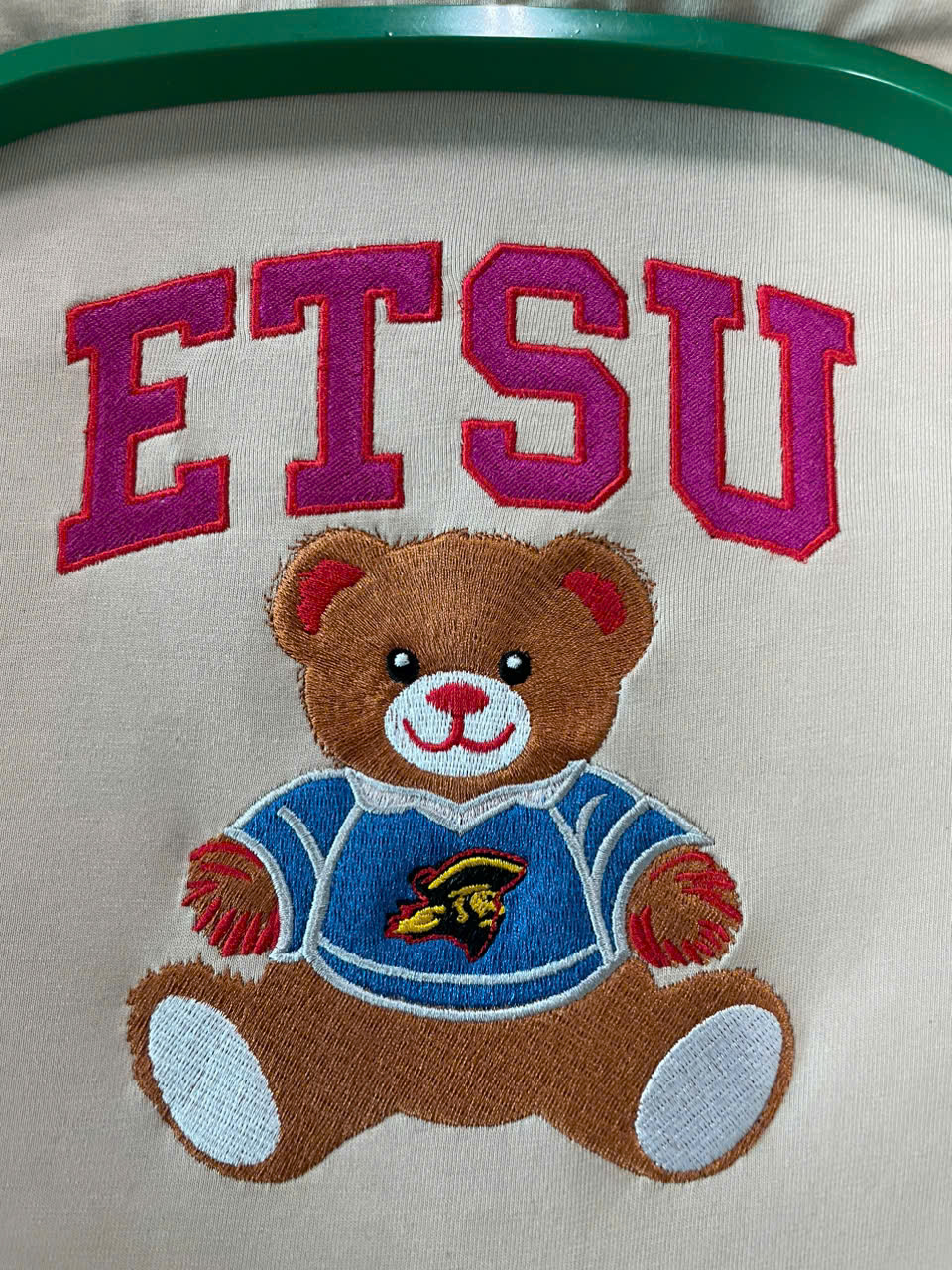 Machine wash cold with similar colors. Do not bleach. Tumble dry low. Do not iron directly on embroidery.